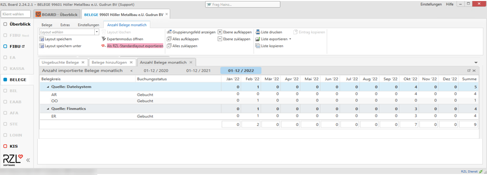 - Anzahl Belege monatlich