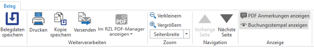 Rufen Sie einen bereits gebuchten in der FIBU auf, können Sie in der Menüleiste entscheiden, ob der Buchungsstempel sichtbar angezeigt wird.