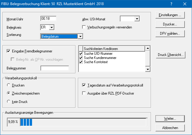 Über Druck Übersicht können Sie sich eine Übersicht über die zu verbuchenden Belege ausdrucken.