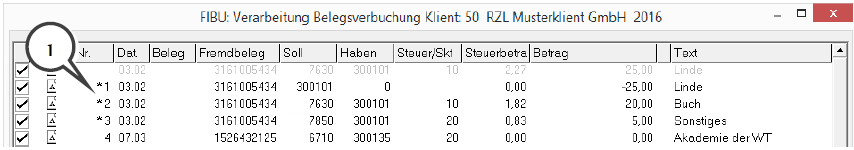 Mehrere Buchungen zu einem Beleg
