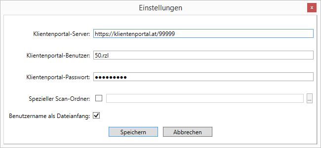 Die Funktion Benutzername als Dateianfang fügt bei den übermittelten Dateien den Benutzernamen an den Anfang des Dateinamens (z.B. wird aus einer Datei mit dem Namen „Beleg Huber“ der Name „50.rzl_Beleg_Huber“).