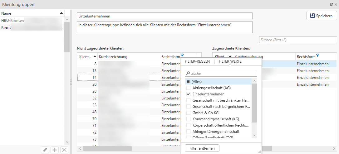 Klientengruppe entweder zuordnen oder entfernen.