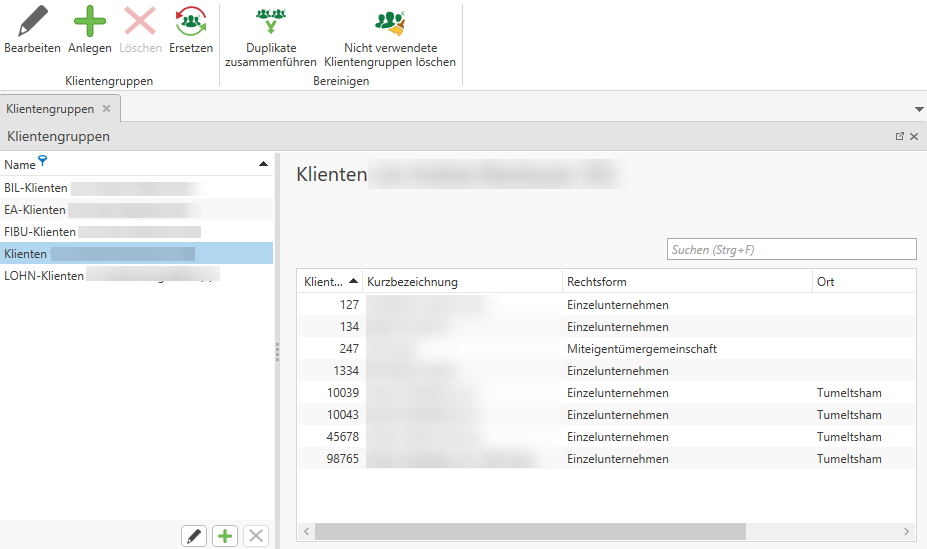 Existieren identische Klientengruppen können diese mithilfe von Duplikate zusammenführen zusammengeführt werden.