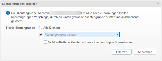 Das Ersetzen von Klientengruppen dient aber vor allem dazu, sehr ähnliche Gruppen zusammenzufassen, um die Liste zu bereinigen.