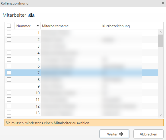 Klicken Sie auf Hinzufügen öffnet sich ein neues Dialogfenster, in welchem Sie einen oder mehrere Mitarbeiter auswählen können.
