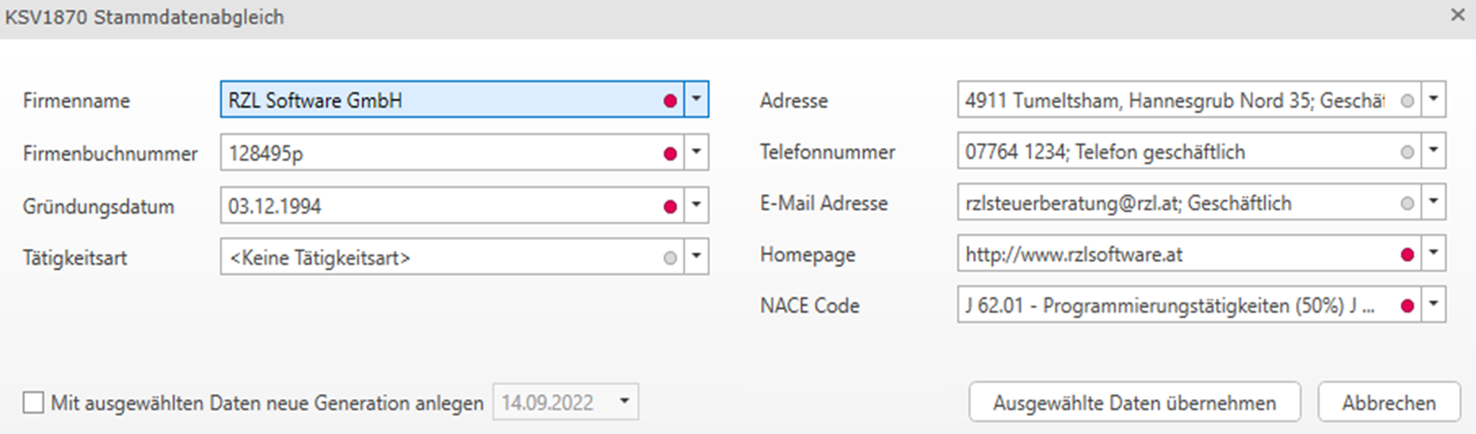 Der Stammdatenabgleich in den RZL Programmen unterstützt nur Unternehmen (keine Privatpersonen), da der StammdatenReport vom KSV1870 für Privatpersonen nicht zur Verfügung steht.