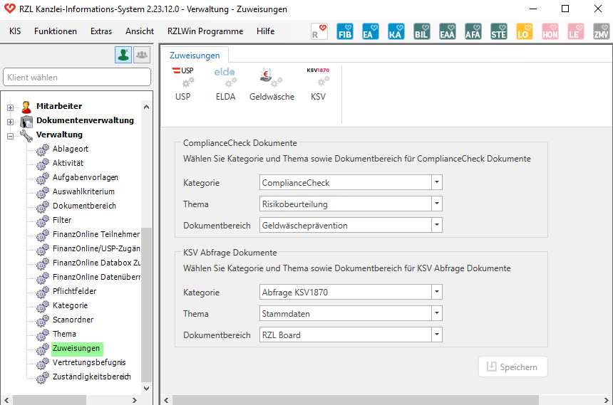 Damit die Dokumente mit passendem Thema, Kategorie und Dokumentbereich im KIS abgelegt werden, müssen diese vorher in der Verwaltung im KIS definiert und unter Zuweisungen im KSV1870 Bereich hinterlegt werden.