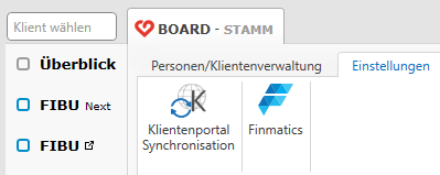 Im STAMM finden Sie neben der Personen-/Klientenverwaltung auch einen Bereich für Einstellungen. Sie können hier Einstellungen für die Klientenportalsynchronisation und für Finmatics treffen.