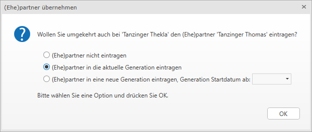 Die Verwendung kann durch einen Doppelklick geöffnet werden. Bei der Verwendung als (Ehe)Partner wird beispielsweise der Ehepartner und bei der Verwendung als Klient, der betreffende Klient geöffnet. So können verbundene Daten schneller erreicht und bearbeitet werden.