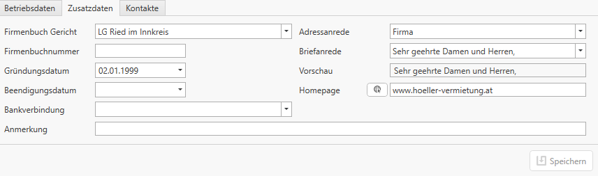 (Eintrag unter dem Punkt Betriebe im Register Kontakte) angezeigt.