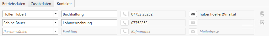 Unter den Kontakten können betriebsbezogene Kontakte hinterlegt werden