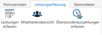 Das Honorarverrechnungsprogramm bietet Ihnen die Möglichkeit, über den Button Überstundenauszahlungen erfassen, welcher sich im Menüpunkt Leistungserfassung befindet, Ihre Überstundenauszahlungen einfach tabellarisch pro Mitarbeiter zu erfassen.