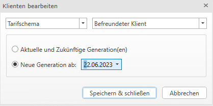 Sind Stammdaten Generationsverwaltend können Sie auch gleich im Zuge der klientenübergreifenden Änderung der Stammdaten für die gewählten Klienten eine neue Generation anlegen.