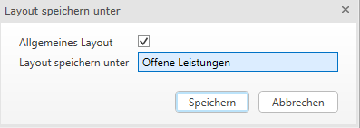 Haben Sie bereits ein Layout ausgewählt und nehmen hier Änderungen vor, wird mit dem Button Layout Speichern das aktuelle Layout überspeichert und mit dem Button Layout Speichern unter können Sie ein neues Layout generieren.