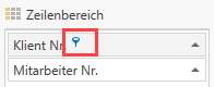 Wie oben erwähnt können die Felder gefiltert werden. Hierfür erscheint ein Trichtersymbol, wenn Sie mit der Maus über das Feld fahren.