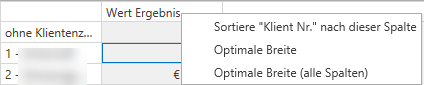 Durch Rechtsklick in die Spaltenüberschrift können Sie mit der Funktion Optimale Breite (alle Spalten) die Breite aller Spalten auf den jeweiligen Spalteninhalt anpassen.