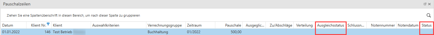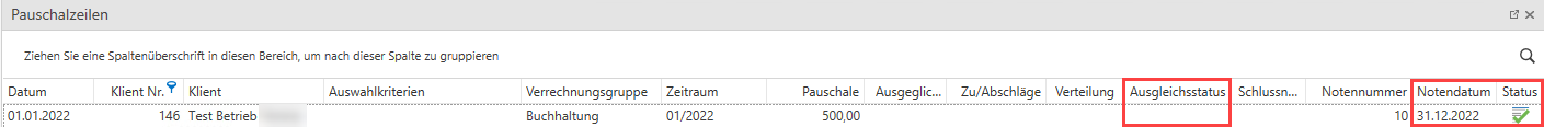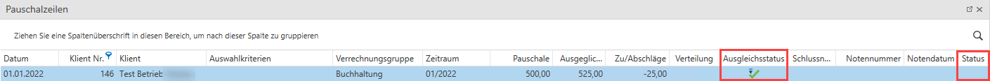 Ausgleichsstatus ist leer und der Status ist Verrechnet.