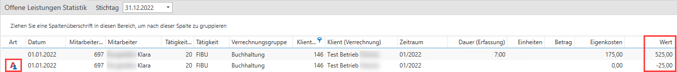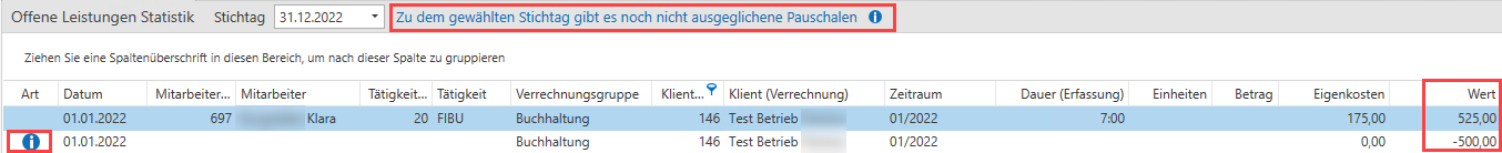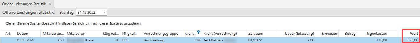 Wurden nun die Leistungen von November 2022 bereits im Jänner 2023 abgerechnet ändert dies nichts an der offenen Leistungen Statistik zum 31.12.2022. Da zum eingegebenen Stichtag die Leistungen noch nicht abgerechnet waren.