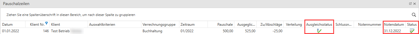 Zeile, weißt das Programm auf noch nicht ausgeglichene Pauschalen hin.