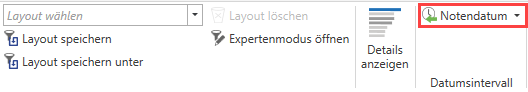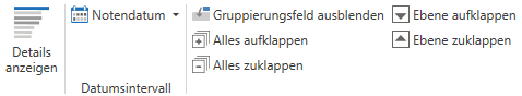 Wenn Sie die allgemeine Umsatzstatistik nach dem Notendatum gruppieren, steht Ihnen im Ribbon die Option Notendatum zur Verfügung. Hiermit können Sie schnell und einfach nach Tag/Monat/Jahr unterteilen.