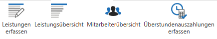 Sie können für Ihre Mitarbeiter Leistungen nach erfassen, löschen bzw. Leistungen korrigieren. Dies alles ermöglicht der Punkt Leistungen erfassen (1) im Ribbon Leistungserfassung.