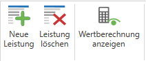 Mittels Mausklick auf die Schaltfläche „Neue Leistung“ im Ribbon oder im rechten unteren Bereich wird Ihnen die Möglichkeit geboten eine Leistung zu erfassen.