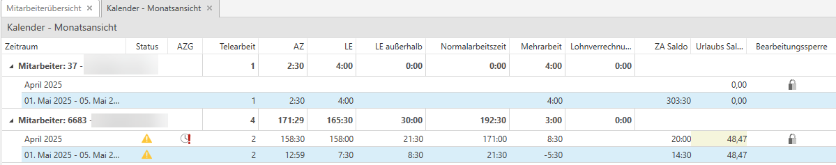 den gesperrten Zeitraum können nicht mehr bearbeitet werden. Es können