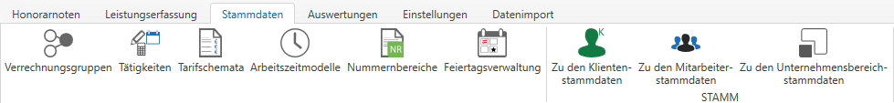Über den Reiter Stammdaten werden Ihnen die verschiedenen Stammdaten der Honorarverrechnung aufgelistet.