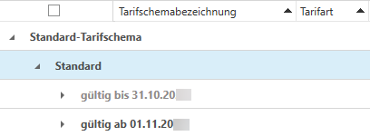 Die Gruppierung der Tarifschemata nach Art - Bezeichnung - Generation ist fest vorgegeben, jedoch kann innerhalb der Gruppierung gefiltert und/oder sortiert werden.
