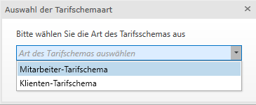 Es öffnet sich im Anschluss ein Dialogfenster, in welchem Sie entscheiden, ob es ein Mitarbeiter- oder ein Klienten-Tarifschema ist, welches Sie anlegen möchten.