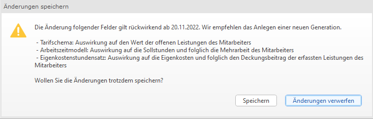 Wird eine Änderung ohne neue Generation eingegeben, erhalten Sie folgenden Hinweis: