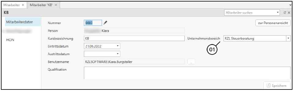 Die HON-Mitarbeiterstammdaten sind nur für jene Personen ersichtlich, die auch das HON-Modul (Rolle Honorarverrechnung) benutzen dürfen.