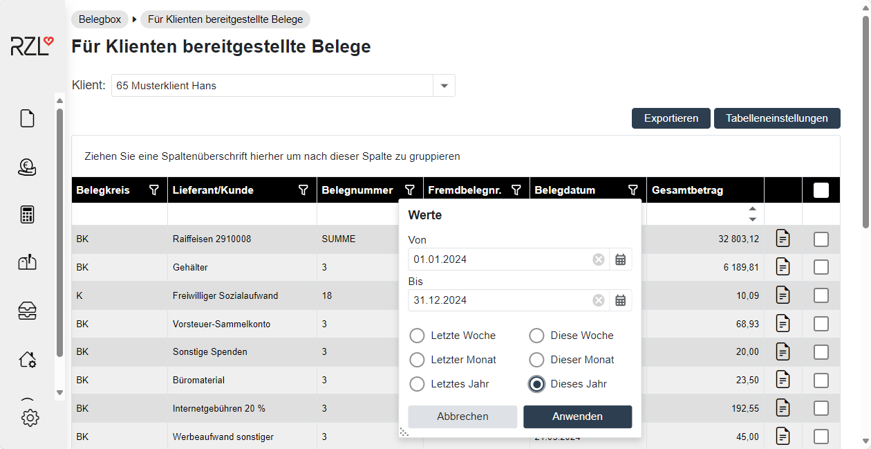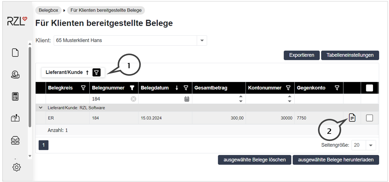 Für Klienten bereitgestellte Belege (Belegearchiv)
