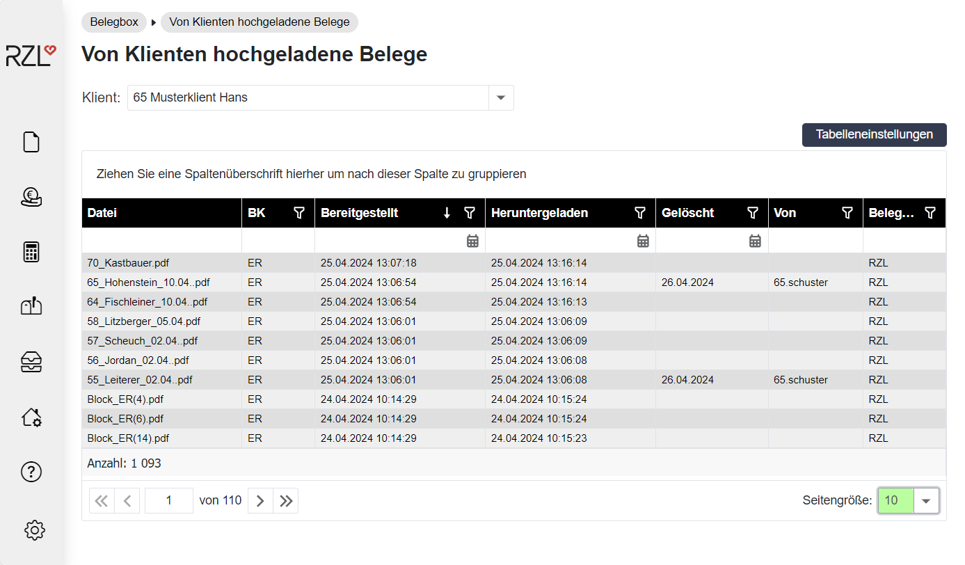 Von Klienten hochgeladene Belege