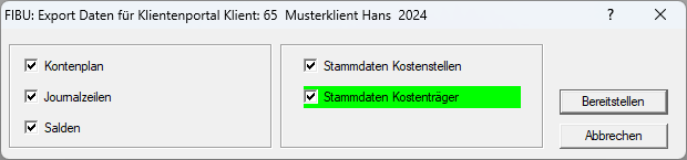 In der RZL FIBU Klassik können Sie über Bearbeiten / Klientenportal /Daten bereitstellen die Journalzeilen und Salden bereitstellen.