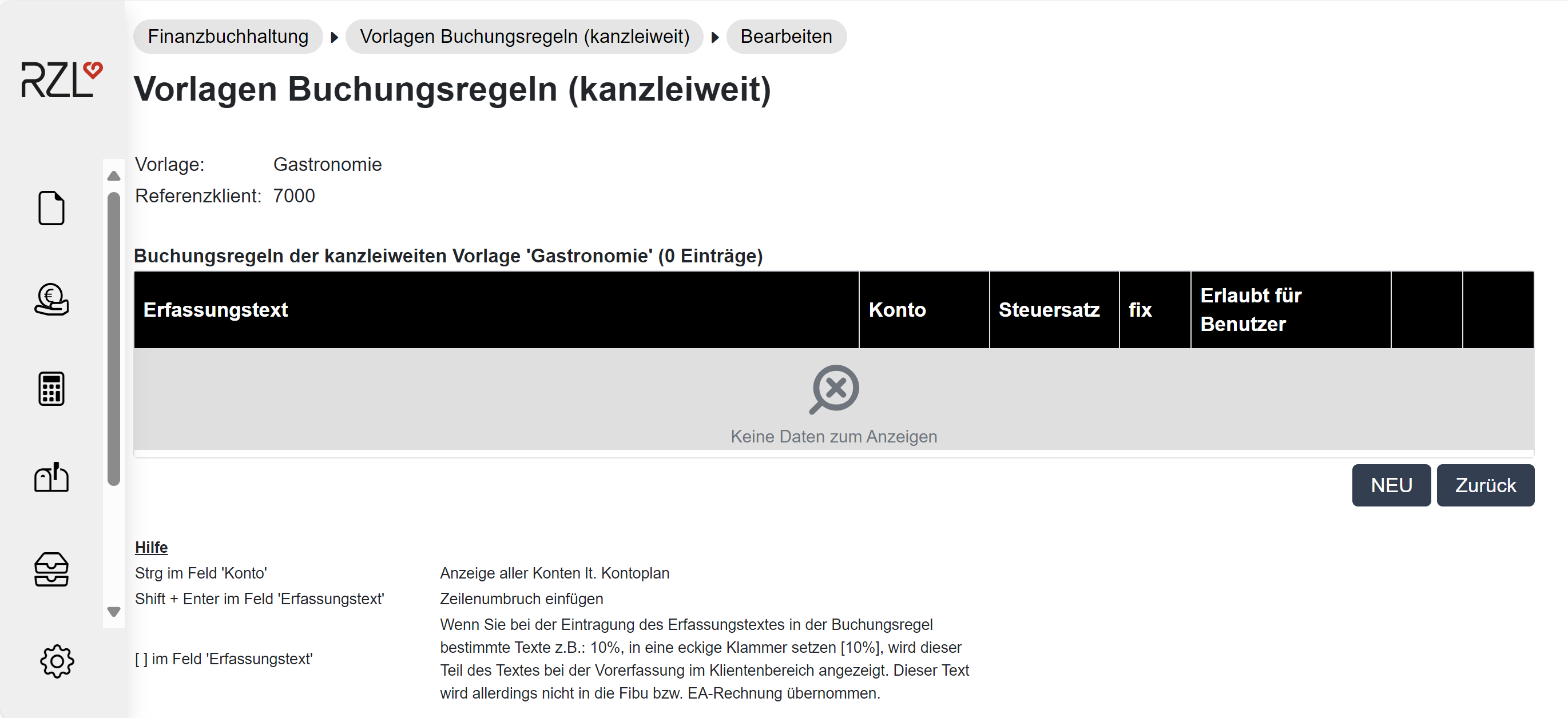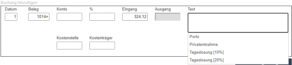 Wenn der Benutzer im Klientenbereich im Rahmen der Vorerfassung die ersten Buchstaben des (Erfassungs)-Textes einträgt, werden die möglichen Buchungsregeln angezeigt.
