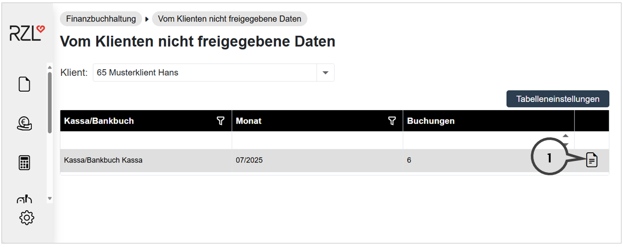 Im Programmteil Finanzbuchhaltung / Vom Klienten nicht freigegebene Daten werden die noch nicht freigegebenen Vorerfassungen des Klienten aufgelistet und können aufgerufen werden (1).