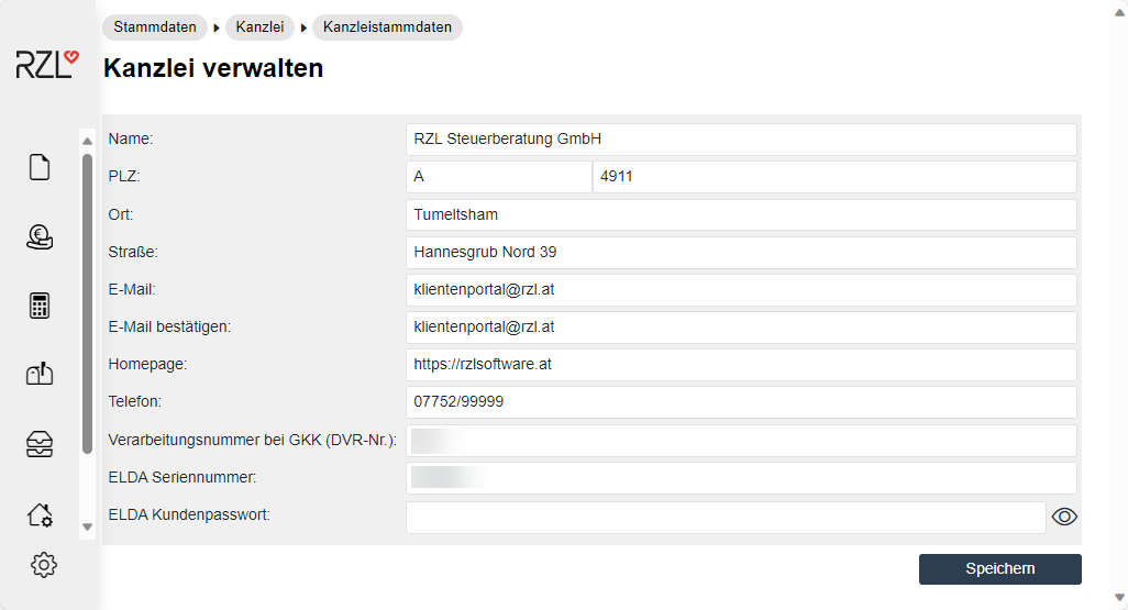 Im Menü Stammdaten / Kanzlei / Kanzleistammdaten können Sie die Stammdaten der Kanzlei hinterlegen.