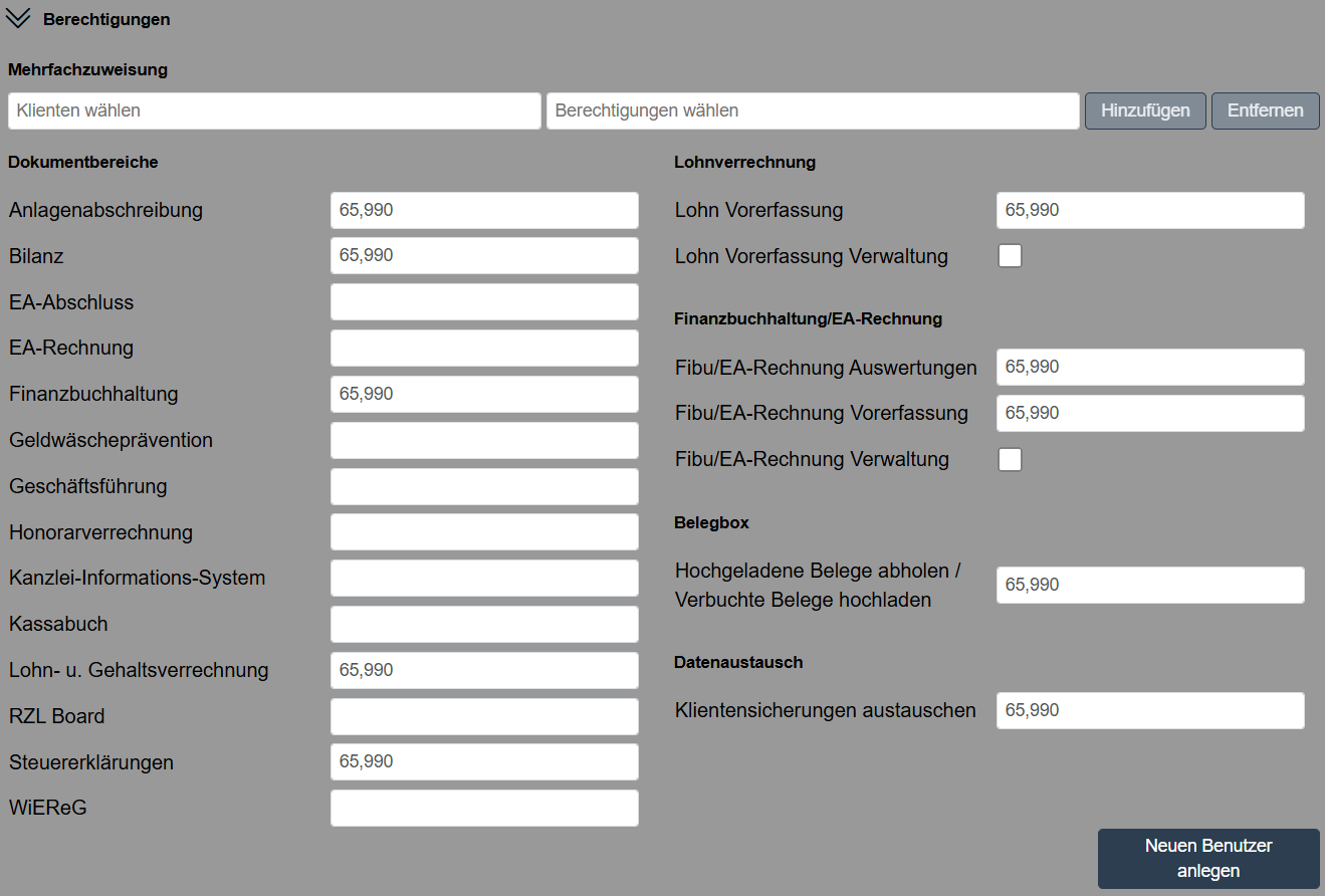 Die Berechtigung ermöglicht die Datenaustausch der FIBU bzw. EA-Daten über das RZL-Klientenportal.