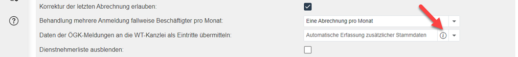 - Das Symbol neben der Option ermöglicht den Aufruf einer kurzen Prozessbeschreibung der angewählten Option. Neben der hier beschriebenen Erfassungsmöglichkeit gibt es zwei weitere Einstellungsmöglichkeiten (vgl. Kapitel "Weitere Erfassungsmöglichkeiten").