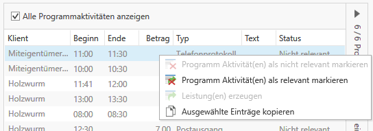 Nicht relevant: Die Programmaktivität wurde als nicht relevant markiert und wird in der Leistungserfassung nicht berücksichtigt.