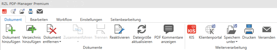 Mit der Schaltfläche Dokument hinzufügen (STRG + H) können Sie externe Dateien (Dokumente und Bilder) zum RZL PDF-Manager hinzufügen.