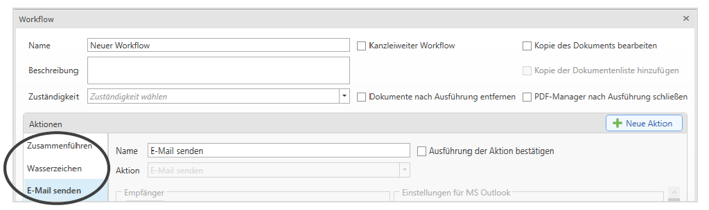 einem neuen Workflow mehrere, bestimmte Aktionen