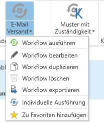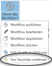 Sie können einen als Favorit gespeicherten Workflow jederzeit wieder entfernen, indem Sie im Bereich Workflow bearbeiten mit der rechten Maustaste dann auf Von Favoriten entfernen klicken.